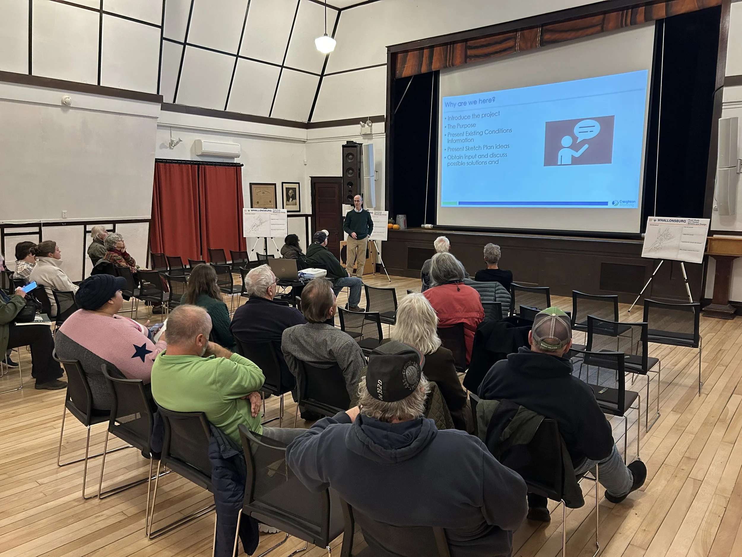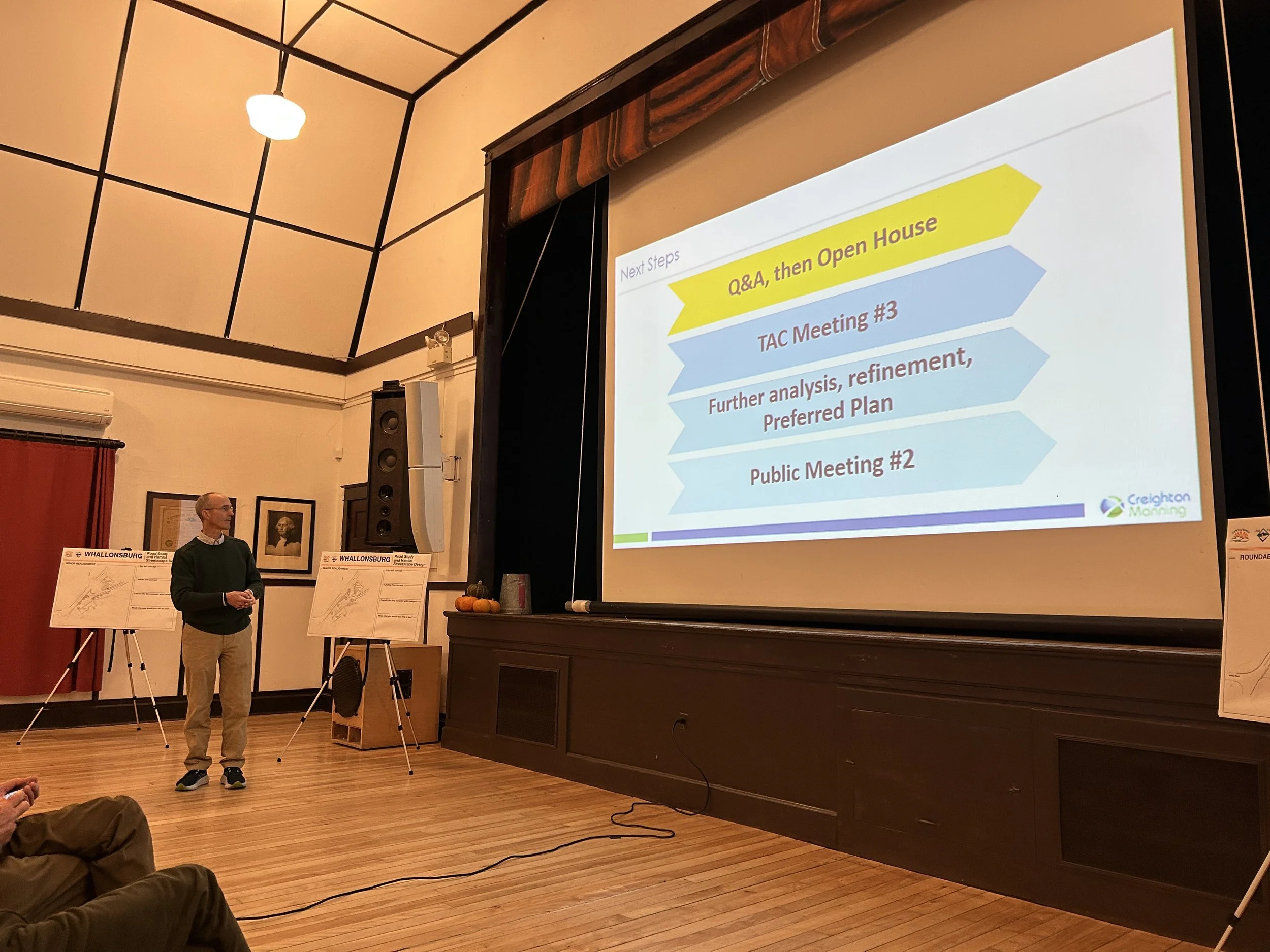 November 12, 2025 - 30+ interested individuals came out to the Grange to learn about the sketch designs and provide feedback to what was created thus far. Those sketch plans are available for review below. The MINOR REALIGNMENT option garnered the most early support, but with modifications recommended.